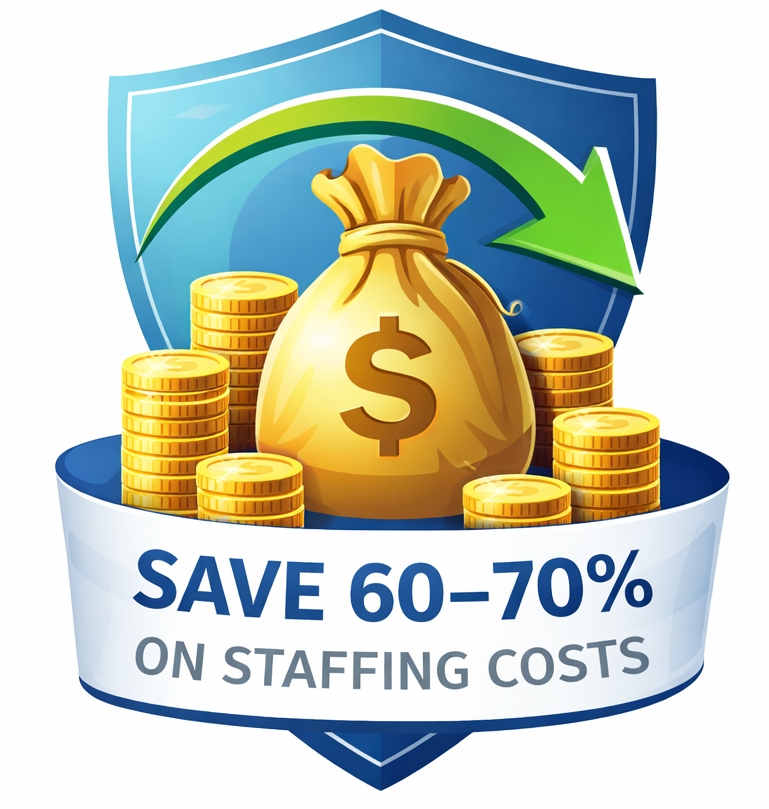 Save 60–70% on Staffing CostsLower overhead without sacrificing coverage.